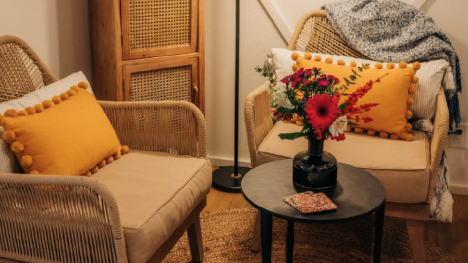 THE COOP Private Room and ensuite bathroom. A cozy yet modern private room and bathroom, featuring a comfortable queen-sized bed, kitchenette, and seating area. $2300