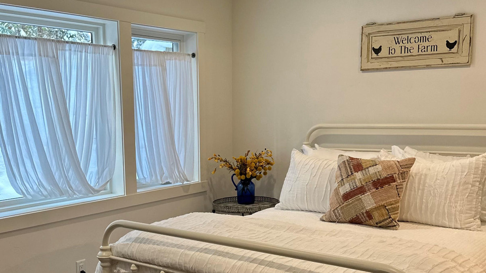 There is ONE Queen Suite (includes a queen sized bed and ensuite bathroom) that can be for one or two people. This option is for two people, great for friends or a couple. As guests in the Roost you get convenient access to a full kitchen, dining room, living area, and outdoor seating areas.